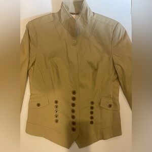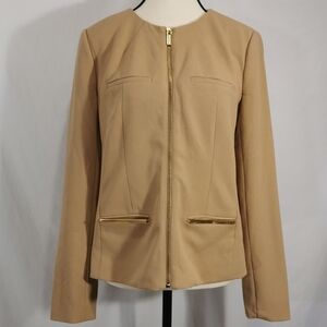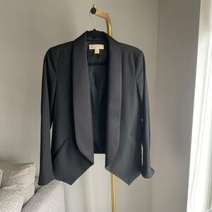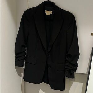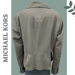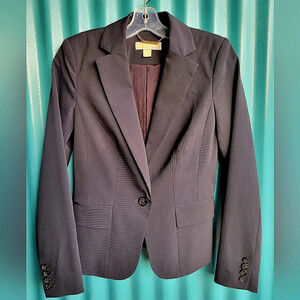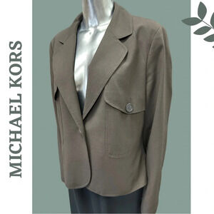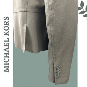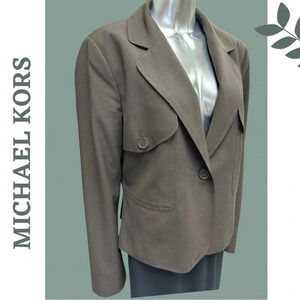 Michael Michael Kors dark brown single breasted blazer with notch collar and front flap pockets. Lined.