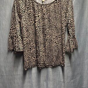 Michael Kors Brown and Black Ruffled 3/4 Sleeve Blouse size medium