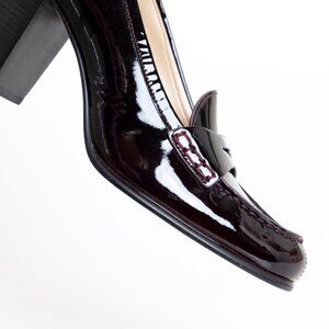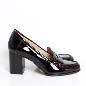 Michael Kors Buchanan Burgundy Patent Block Heel Loafers Preppy