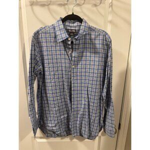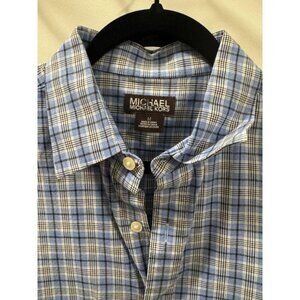 Michael Kors Button-Down Shirt Men's Medium Blue Plaid Long Sleeve Casual
