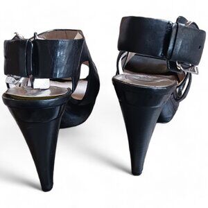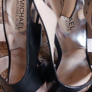 Michael Kors Carla Black Leather Platform Open Toe Cone Heels