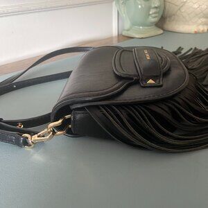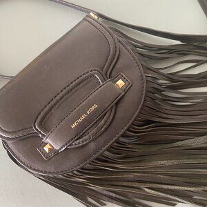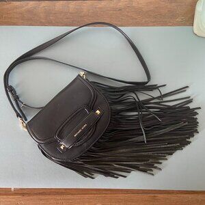 Michael Kors Cary Small Fringed Leather Crossbody Saddle Bag