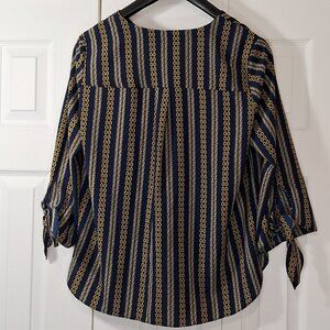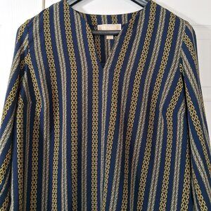This elegant Michael Kors blouse features a classic blue that adds a touch of elegance to any outfit. Its lightweight fabric ensures comfort and a sleek silhouette, ideal for both casual and formal occasions.