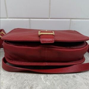 Elegant Michael Kors crossbody in cherry red. Features adjustable strap and gold-tone buckle.