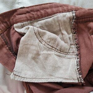 A classic straight fit silhouette with a high rise design. Chocolate heather/chestnut tone.