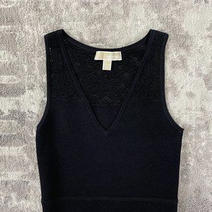 A sleek and sophisticated bodycon/sheath style-dress. The material is a thick knit with some stretch. Excellent condition.