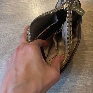 All the inside is in tact it just has little black makeup residue marks.. other than that everything is fine. I tried to wash it but was scared to ruin it so just kind of dabbed the inside. Lots of photos to look through.