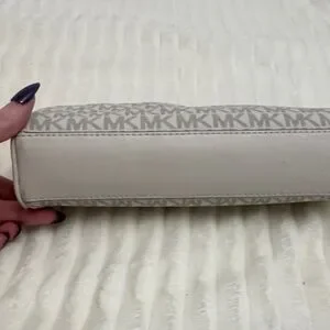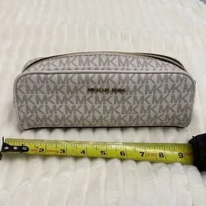 Elegant Michael Kors pouch with signature cream monogram. Ideal for storing essentials.
