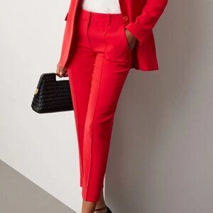 Red crepe (70% Triacetate, 30% Polyester). Pants. Front zipper closure. Imported.