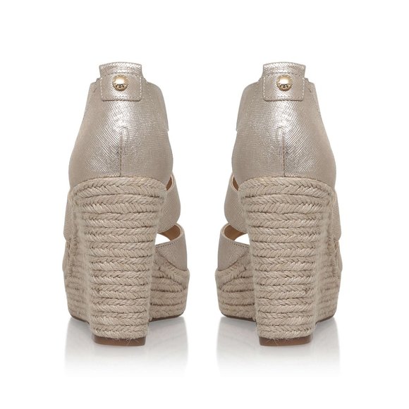 • 4" jute-wrapped wedge heel; 1" platform; 3" equiv.