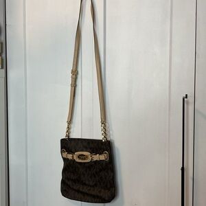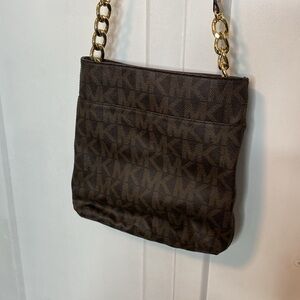 Michael Kors Dark Brown Crossbody Bag with Gold Accents