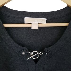 Michael Kors Derby Basics Dark Gray Jersey Long Tunic Top with 3/4 Sleeve & Decorative Toggle Closure