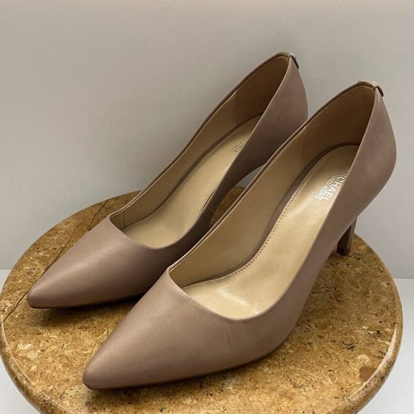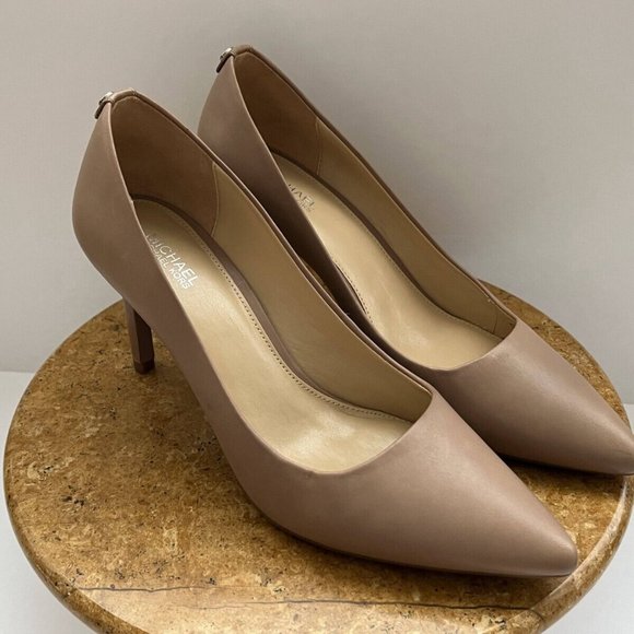 Michael Kors Dorothy Flex 40F6DOMP1L Women Beige Leather Slip On Pump Heel Size 8M.