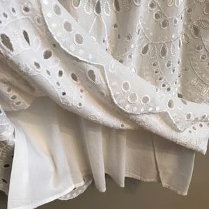 Embroidered eyelet dress, scalloped hem, hidden back zip, slip lining. Shell and lining - cotton.