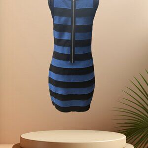 Expertly designed for both outdoor summer picnics and elegant dinner parties, the Michael Kors Black and Blue Bandage Dress boasts vivid and stylish stripes made from premium, stiff fabrics. Perfect for making a statement while staying comfortable, this dress is the ultimate summer must-have.