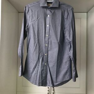 Michael Kors Dress Shirt 14 1/2 Navy Herringbone 💯 % Cotton Long Sleeve Slim
