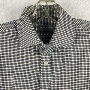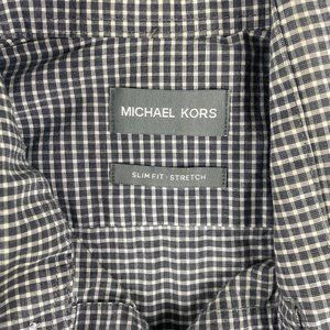 Michael Kors Dress Shirt Mens 15-15.5 32/33 Slim Fit Stretch Grey White Check