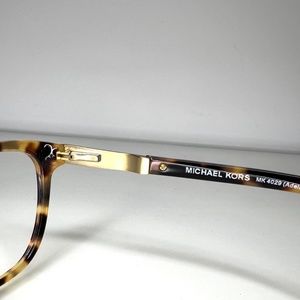 Michael Kors Eyeglass Frames in stylish animal print. These are the Adelaide III model (MK 4026). These beautiful trendy animal printed frames are sure to make a statement! Please note the lenses are not included (frames only). The frames are in great condition overall, however they do have some small scratches on gold Michael Kors temple detail (see photos). The lens width is 50 mm and the lens height is 38 mm. The frame with is 144 mm. Get your hands on this beautiful pair of quality Michael Kors eyeglass frames!