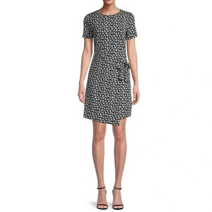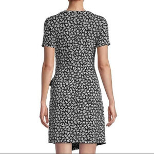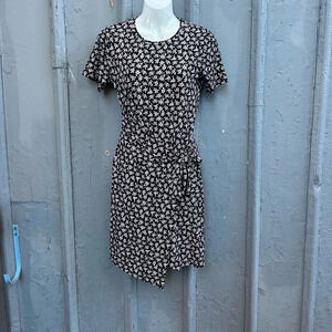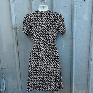 Pretty floral faux wrap front dress. I believe it is black and white but it’s possible it might be a dark navy.