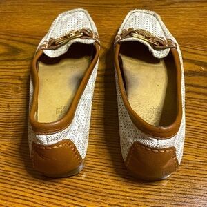 Inner lining in used condition but outer in excellent condition except for peeling on bottom of one shoe near under toe as shown in last photo.