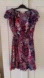 Navy, orange, and pink floral mini dress. Elastic waist. Drop V-neck. Floral cutouts along trim.