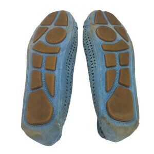 These are blue perforated suede ballet flats with MK medallions by MICHAEL Michael Kors.