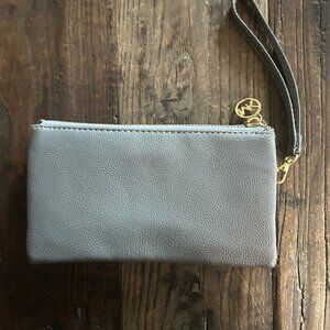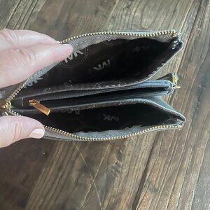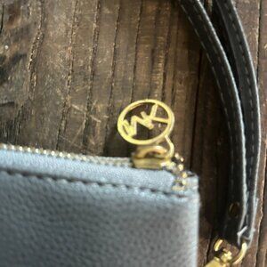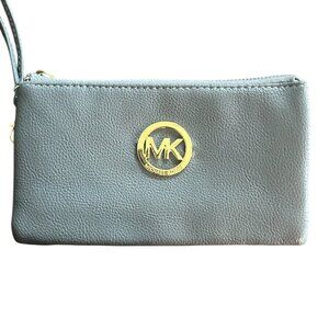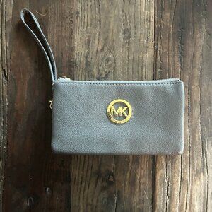 Michael Kors Fulton Large Wristlet Wallet Pebbled Leather Gray Gold Logo Large