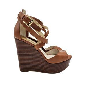 Michael Kors Gabriella Leather Wedge Sandals, Tan brown, Size 5.5