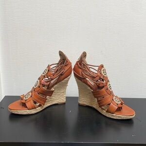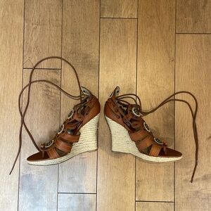 Michael Kors Gladiator Wedge Heel Leather Sandal Platform Lace Up Boho Brown 7