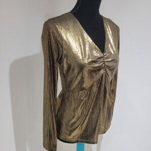 Michael Kors Gold Flowy Long Sleeve V-Neck Top Blouse Size Small Metallic NEW