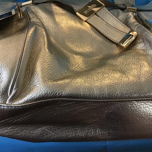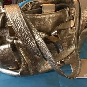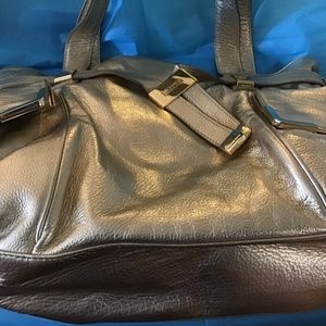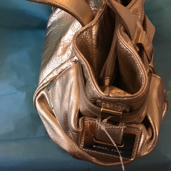 Gold plated hardware, bottom studs, 3 large interior compartments, middle zippered enclosure,