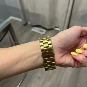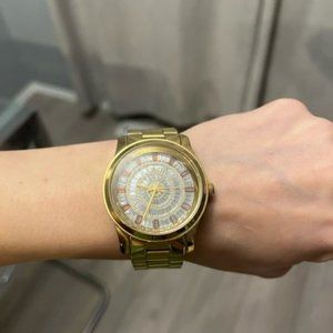 Michael Kors Gold Watch With Orange and White Crystal Face