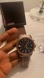 Elegant watch with a black face. Gold and silver bracelet design. Perfect for any occasion.