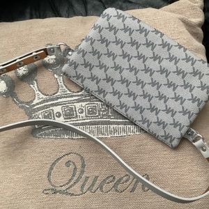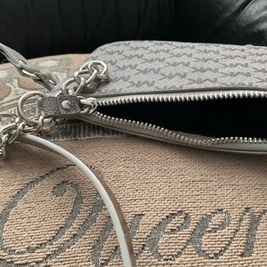 MICHAEL KORS envelope style grey belt bag in with silver accents and hardware.