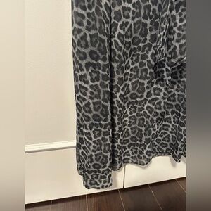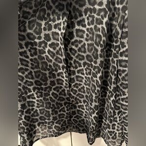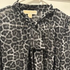 Michael Kors Gunmetal Cheetah Print Sheer Tie Neck Blouse Size Large Womens