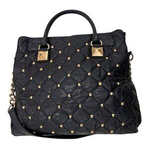 Michael Kors Black Leather Large Studded Hamilton North South Tote Purse