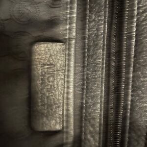 Michael Kors black handbag with silver hardware. Two top handles and long strap, zippered pockets on each end.