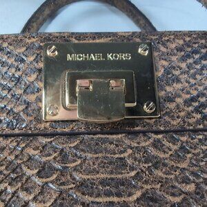 Michael Kors Handbag Purse Astrid 35F4GARS3D Leather Brown Gold Snake Python