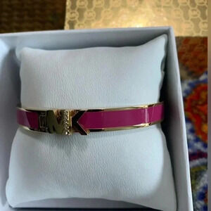 Michael Kors Haute Rose Gold Hot Pink Enamel Bangle Bracelet MKJ7705710 + MK BOX