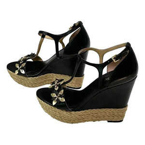 Michael Kors Heidi Womans Shoes Size 7.5 M Wedge Black Gold Juet Platform