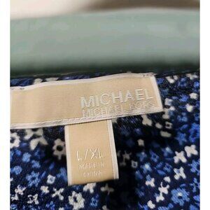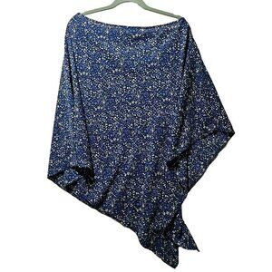 Michael Kors Kaftan Poncho Topper Size L/XL Blue Floral Boho Hippie Lagenlook