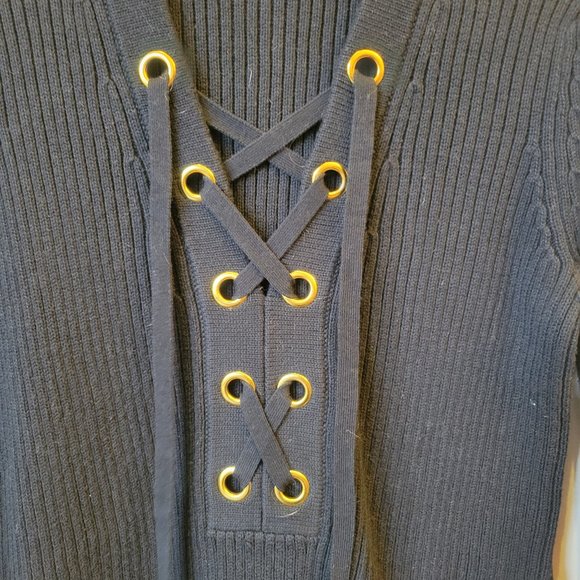 Michael Kors Knit Tunic with Grommet and Lace Detail in Blue