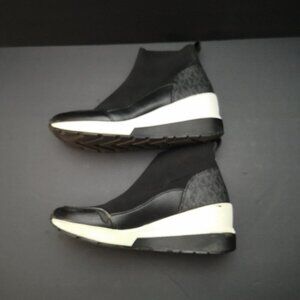 Michael Kors Ladies Size 6.5 Black & White Wedge Pull On Style Sock Booties