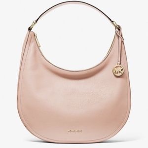 The perfect chic choice for daily looks, this Michael Michael Kors bag showcases a timeless hobo-style shape and luxe pebble leather.