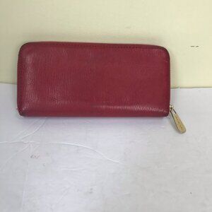 Michael Kors Leather Gold Rivets Ring Red Zippy Wallet Clutch Organizer Bag Logo