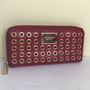Michael Kors red Leather With Gold Rivets Continental Zippy / zip around wallet clutch.