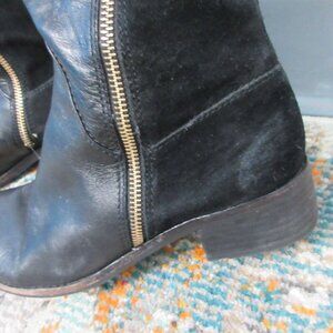 Michael Kors Leather Knee High Riding Tall Boots Women 7.5 Black Low Heels 1034