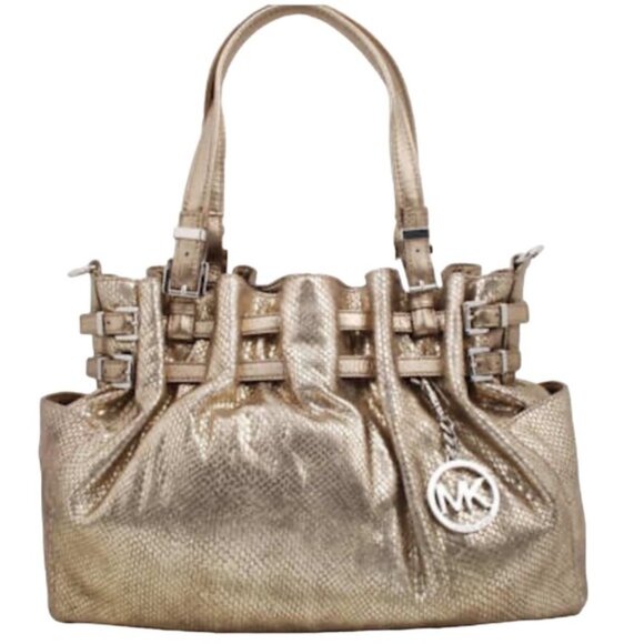 MICHAEL Michael Kors Leather Snake Skin print Pewter Gold Shoulder bag. Silver tone hardware.