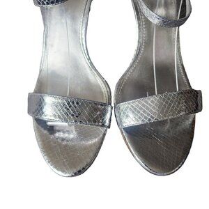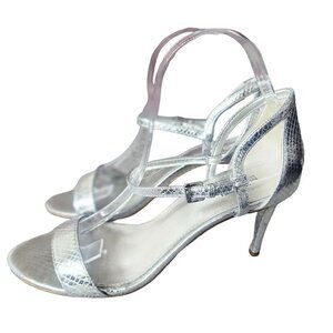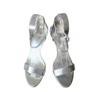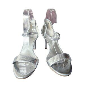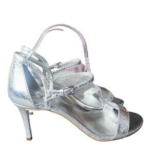 Michael Kors Leather Snakeskin Strappy Dressy Heeled Sandals Silver Women's 8.5M