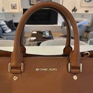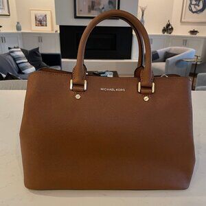 Michael Kors Savannah Saffiano Leather Large Satchel Handbag in Chestnut Brown * missing cross body strap